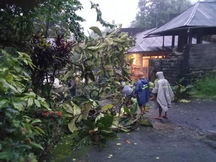 - Di Banjar Dinas Jembong, terjadi pohon tumbang yang menutup akses jalan menuju Desa Munduk. Jenis pohon yang tumbang adalah pohon yang memiliki batang keras dan berumur belasan tahun sehingga harus menggunakan gergaji mesin atau senso untuk membersihkannya dan menyebabkan kemacetan hampir 2 jam